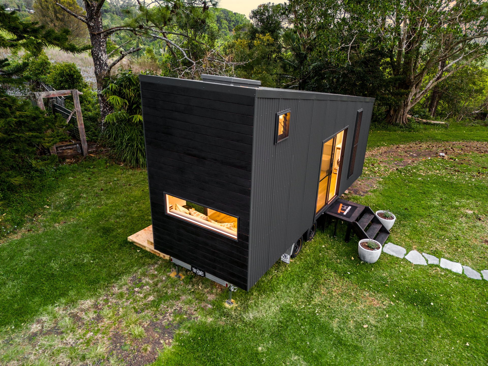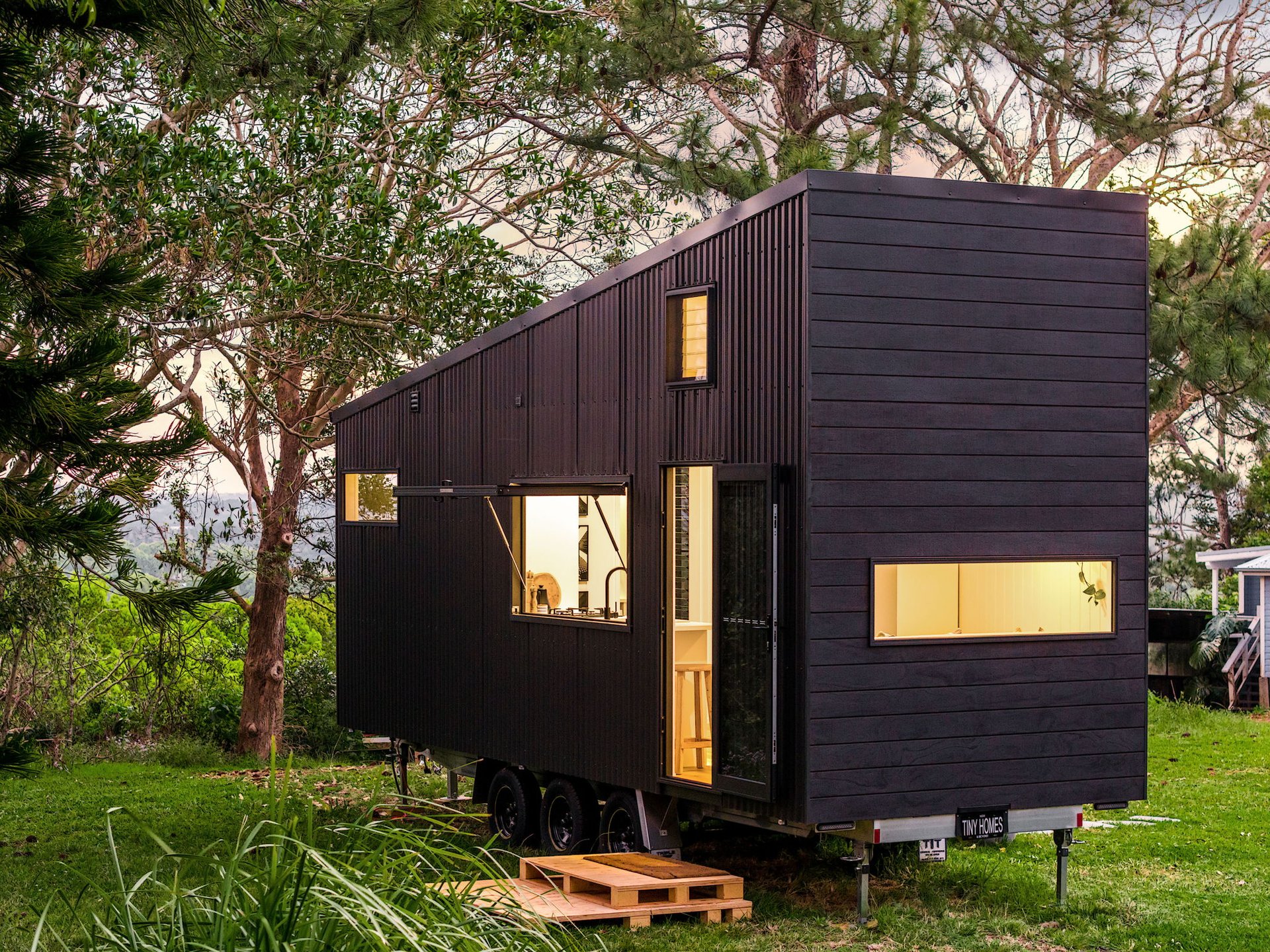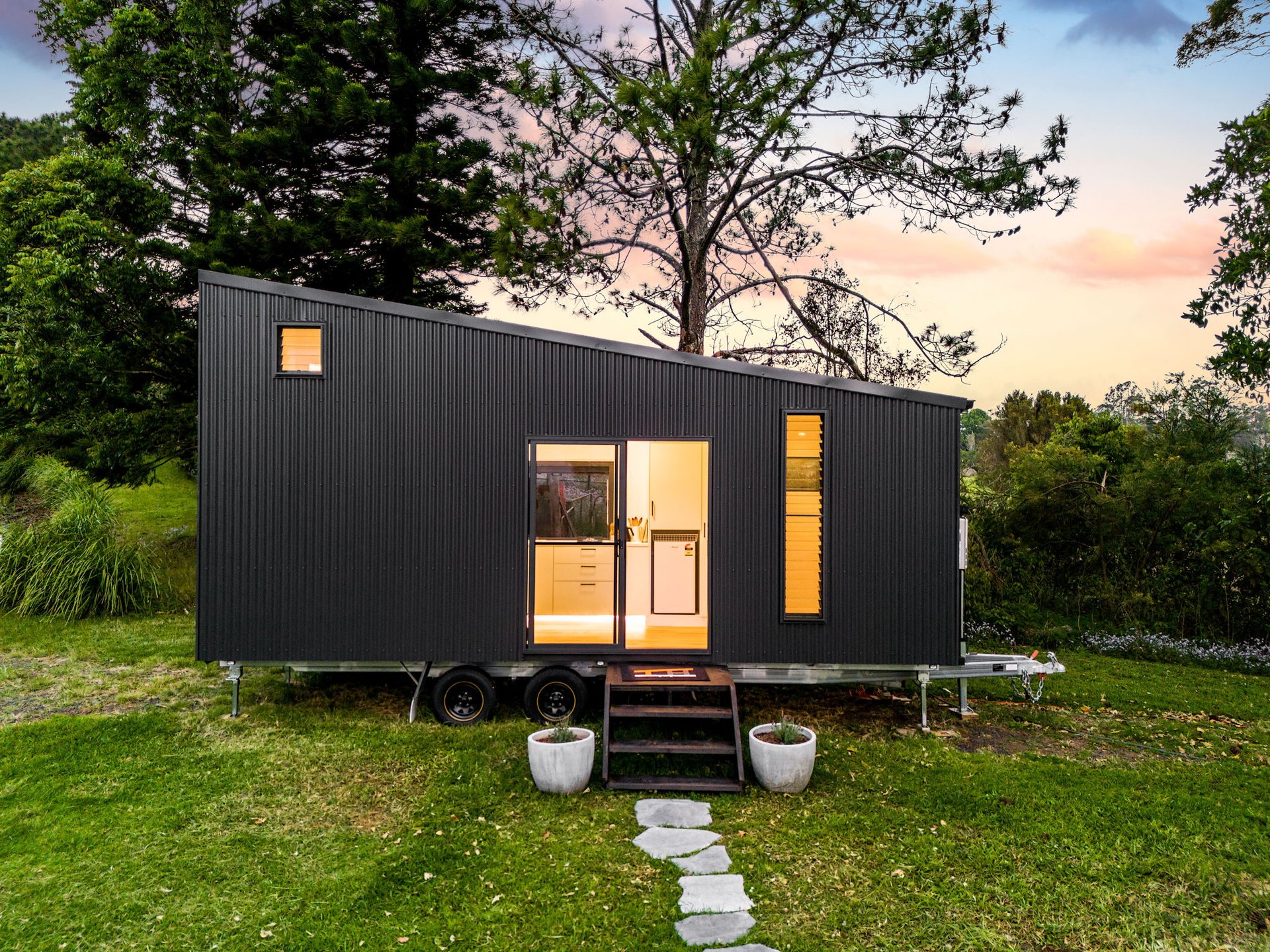 The first tiny house on wheels came together from a few basic sketches over a couple years, finally getting built into reality. Measuring 7.2m long and 2.4m wide, this custom-built home features a surprisingly spacious, light-filled interior, with a very large bathroom and kitchen for its size. Integrated bookcase-sofa and a comfortable loft area for sleeping. We prioritized using high-quality materials, and innovative space-saving solutions. Designed for both style and functionality, it showcases our commitment to creating one-of-a-kind tiny homes that blend luxury with functionality.